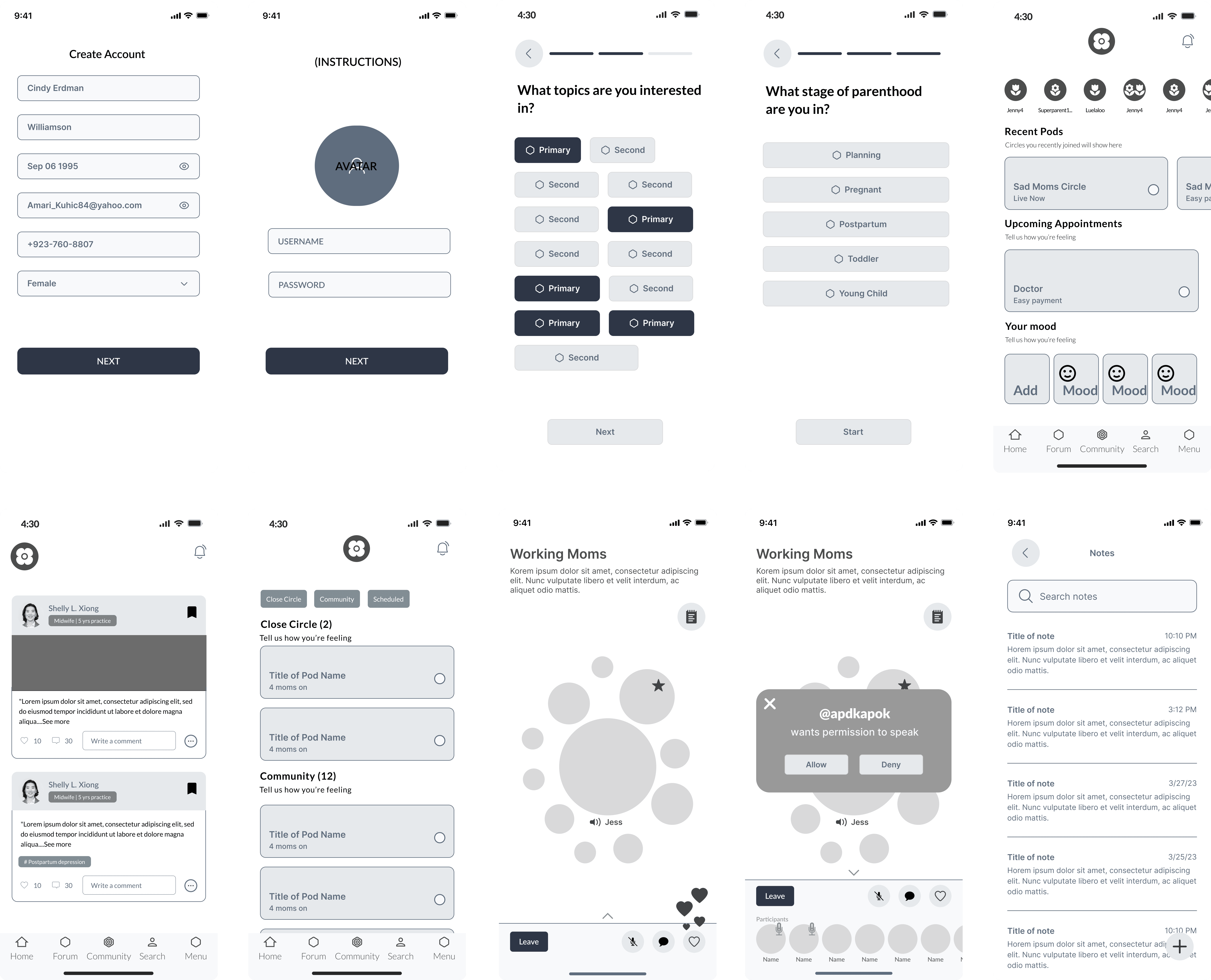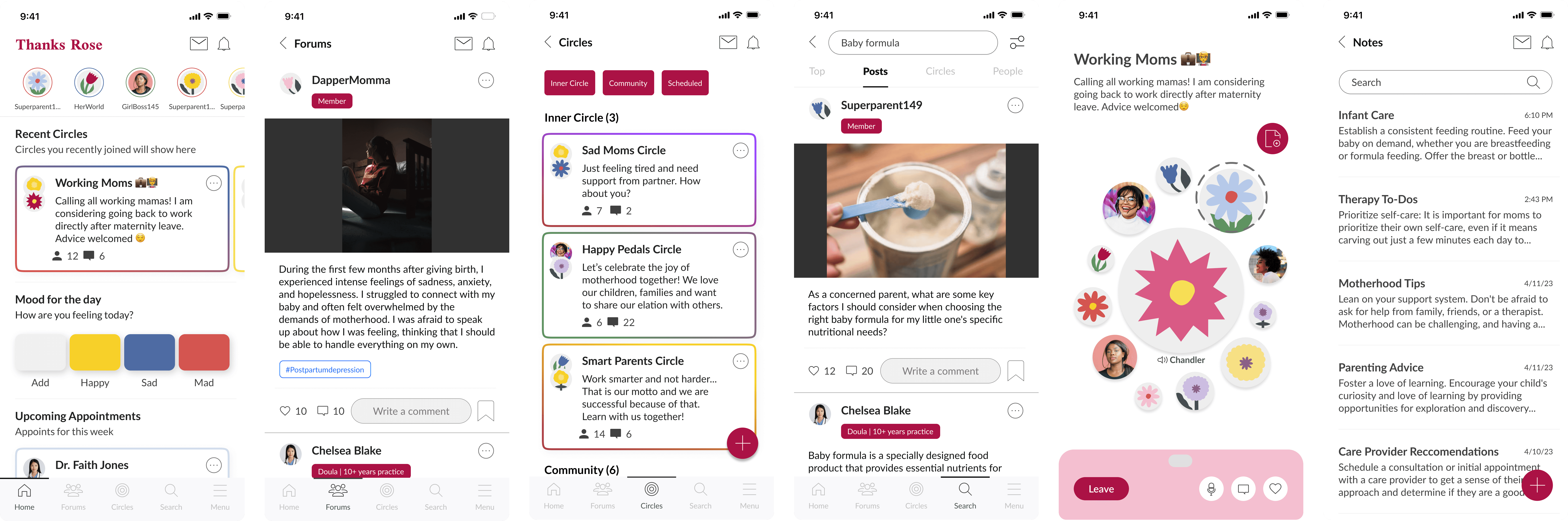 0-1 MVP design: leading MVP design, product strategy, Value proposition, and design system for a pre-seed start up supporting motherhood.