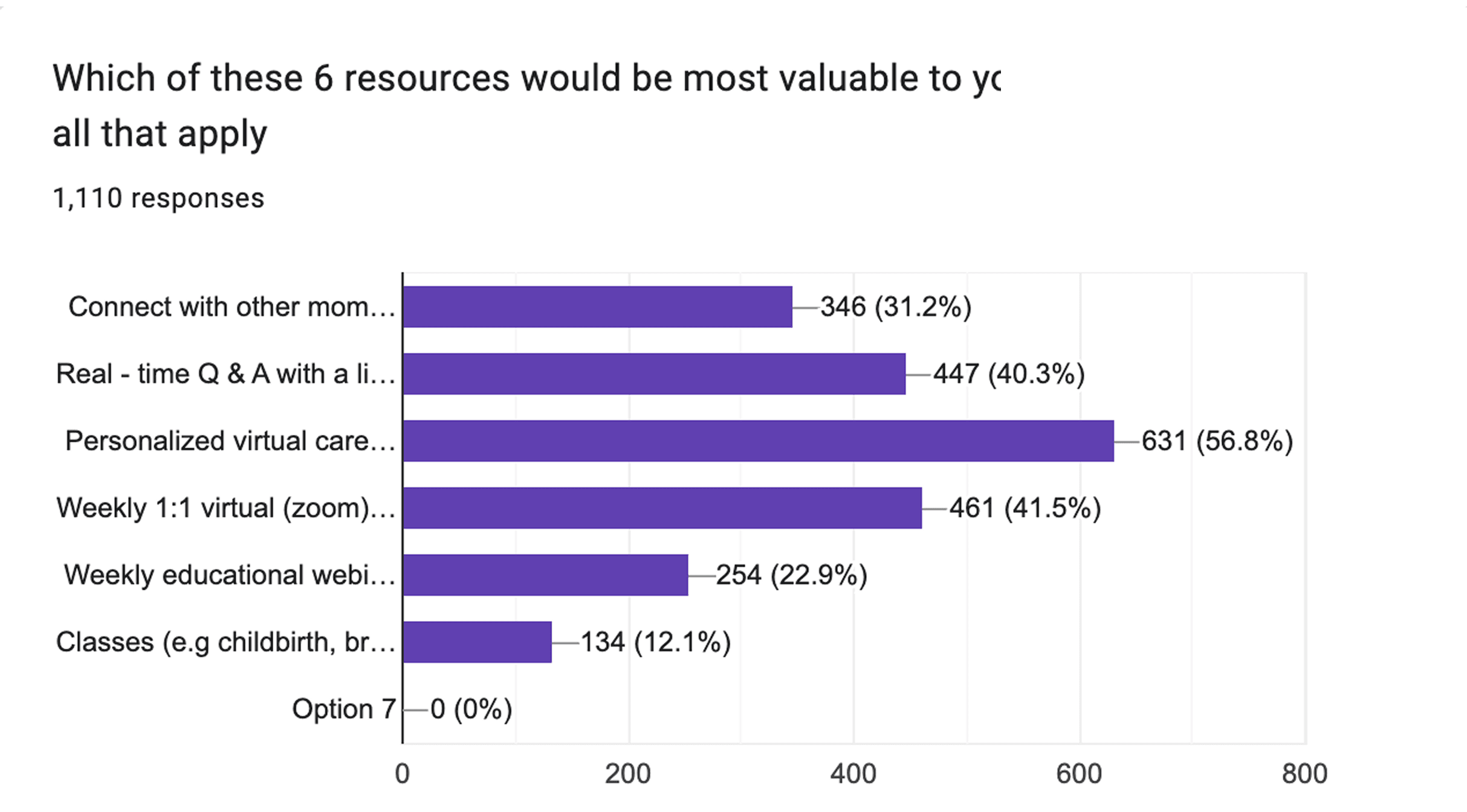 1,110 women were surveyed—from pre-natal to post-natal—in order to figure out which features we should prioritize.